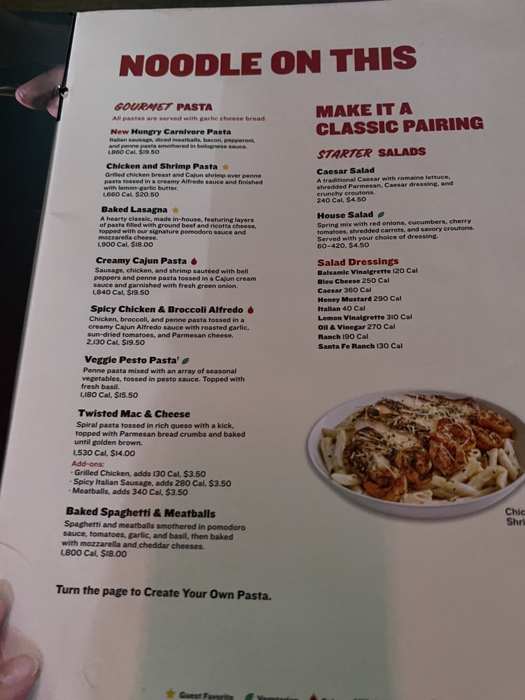 Choose your pasta and sauce to create a perfect meal. Then add any of our extras to make it your own!