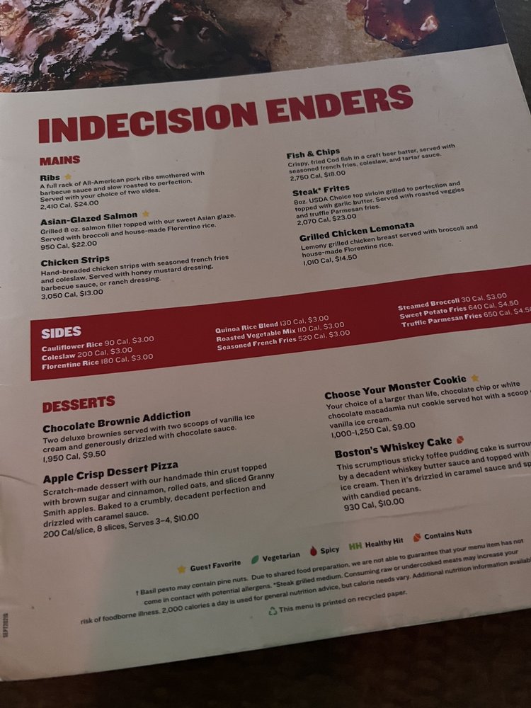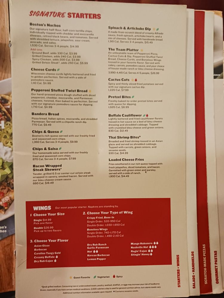 - Vegan and Vegetarian: Boston’s also accommodates various diets with extensive vegetarian and vegan options.